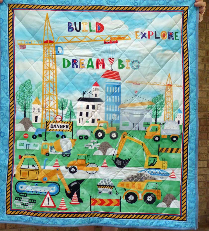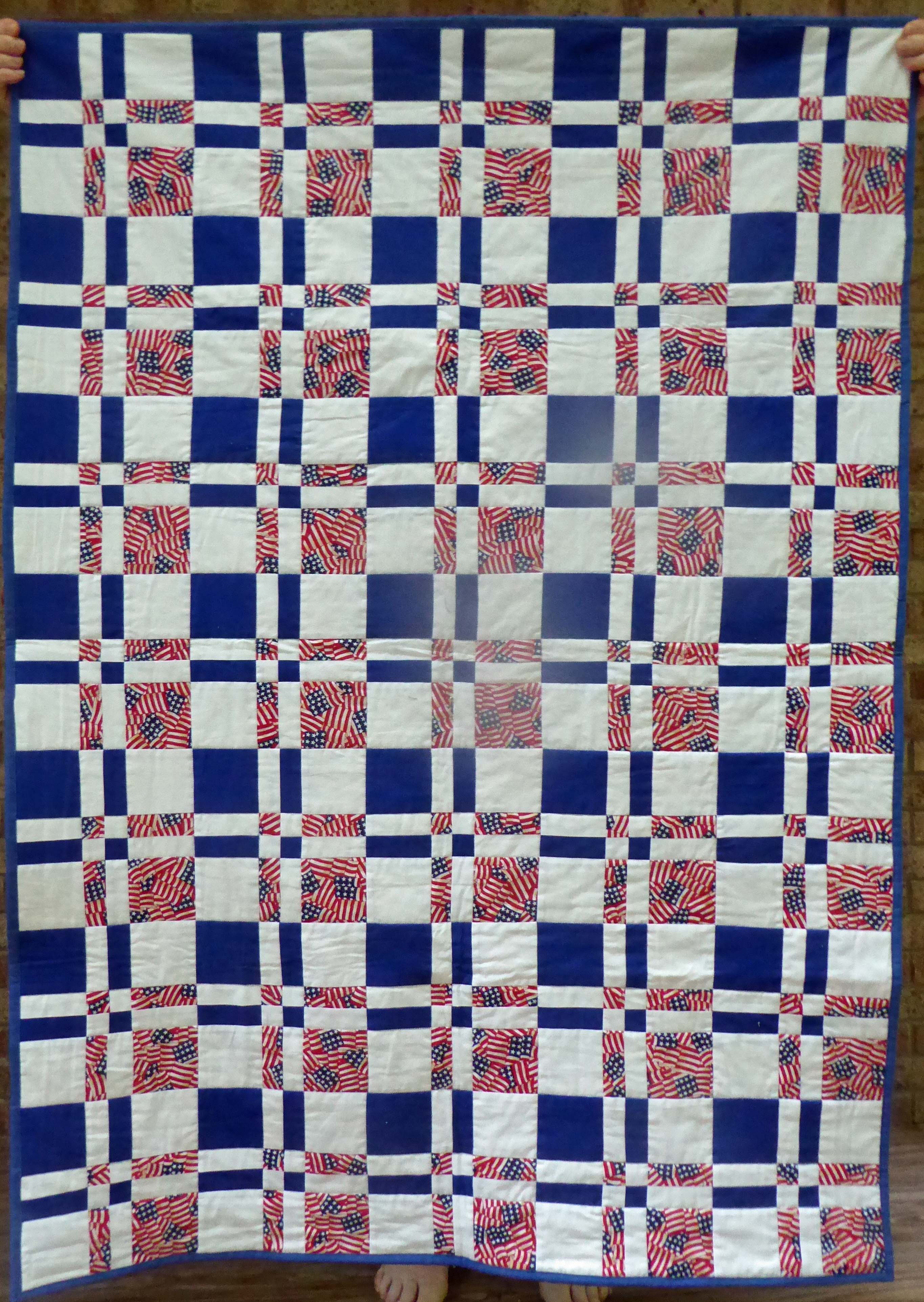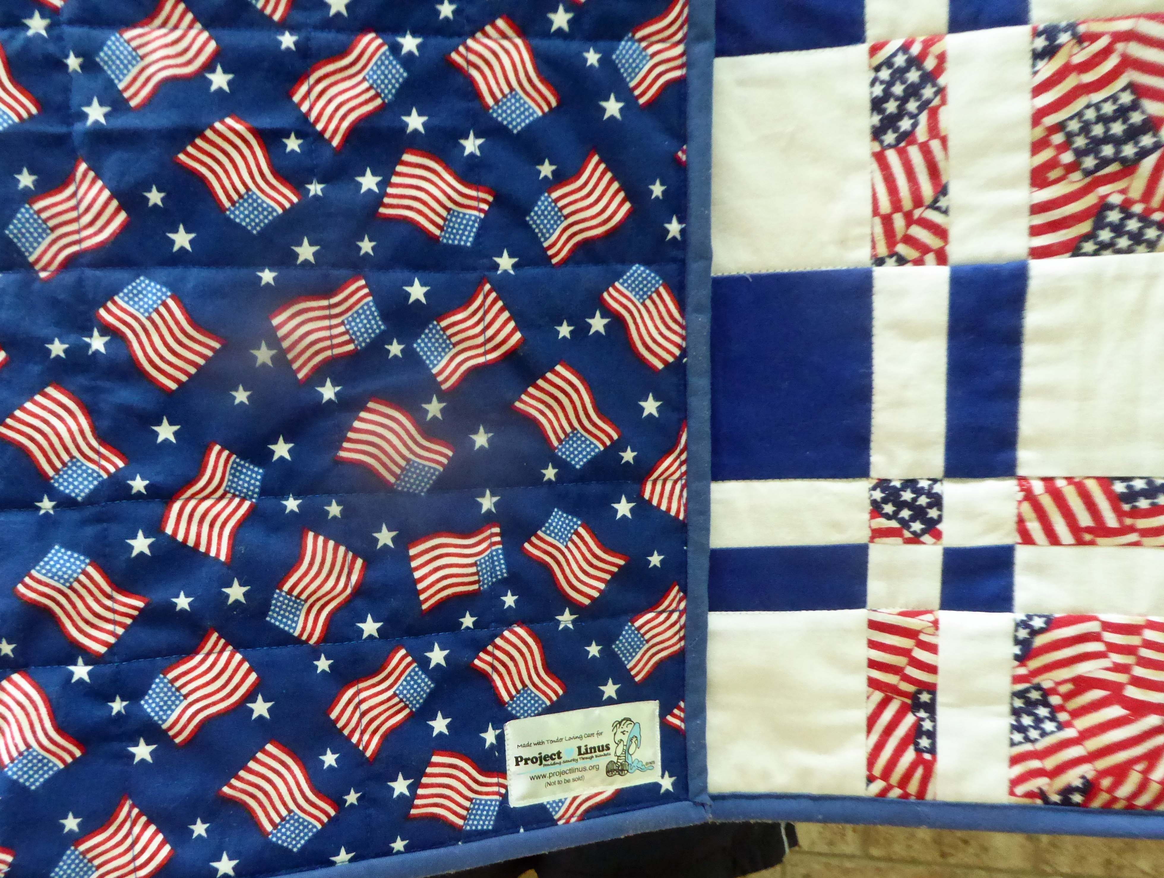More Project Linus Quilts I never tried a Disappearing 4 patch before. I chose colors to go with the donated backing fabric. Panel quilt. It has a blue and white checked flannel backing, also donated fabric.